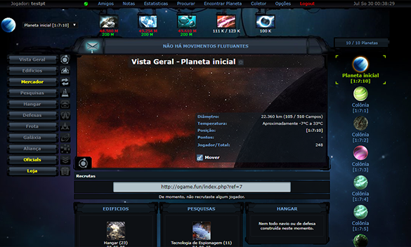 OGame é um jogo de estratégia no espaço onde milhares de jogadores espalhados pelos quatro cantos do mundo, Para conseguires jogar só precisas de um web browser.